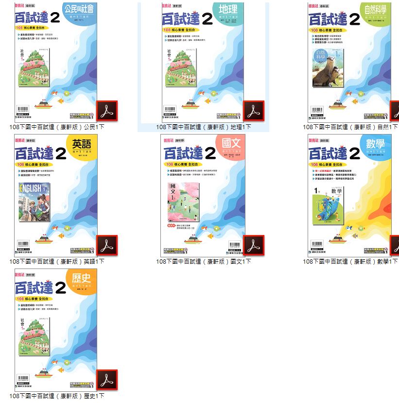 108學年下學期 國中百試達評量卷 康軒版 1-3年級 全科目 卷類光碟DVD版