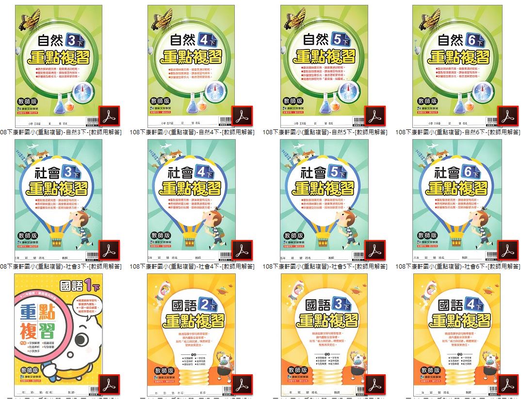 • 108學年上學期 國小 1-6年級 國小輔助教本 南一版-國小隨堂演練+康軒版-國小重點複習+翰林版-國小課堂演練 全科目+全版本 合輯版 DVD版