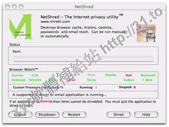 NetShred能夠快速簡便的永久、徹底的刪除瀏覽器的cache和歷史記錄以及無用的email資訊。