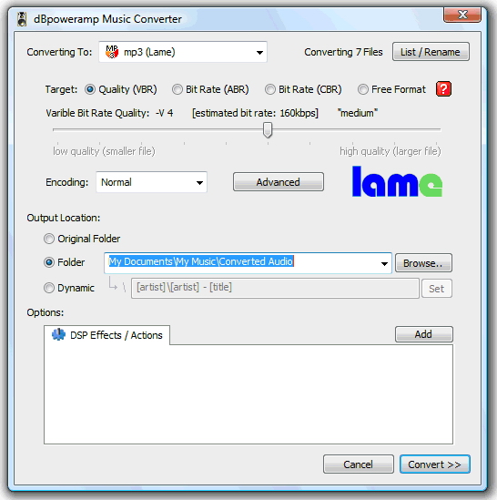 Apply VST or DirectX DSP effects whilst converting
