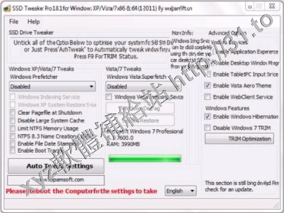 可能需要時間研究和擺弄正確設置你的SSD硬盤。現在有了這個小應用中你可以調整 Windows 2K/XP/Vista及Windows7包括x64版。