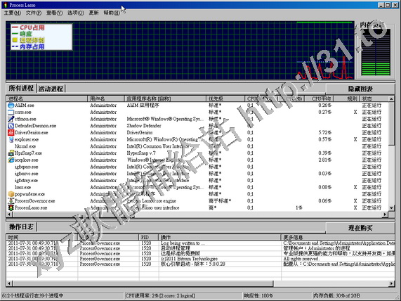 狀。同時它還具備前台進程推進、工作集修整、進程黑名單等附加特性。Process Lasso對您系統